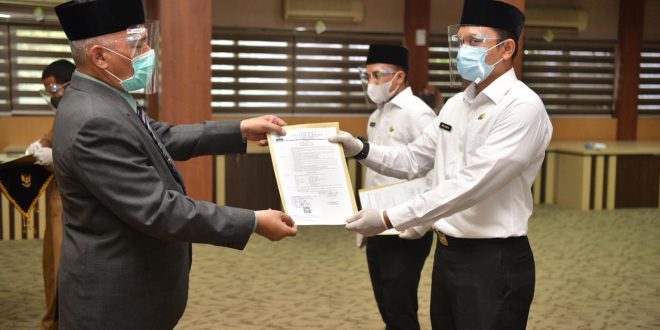 Sekretaris Daerah Aceh dr. Taqwallah, M.Kes. melakukan Pengambilan Sumpah atau Janji Pegawai Negeri Sipil (PNS) dan menyerahkan SK PNS Formasi CPNS Tahun 2018 di Lingkungan Pemerintah Aceh, kegiatan ini berlangsung di Gedung Serbaguna Sekretariat Daerah Aceh Jalan T. Nyak Arief Banda Aceh, Selasa (22/09/2020).
