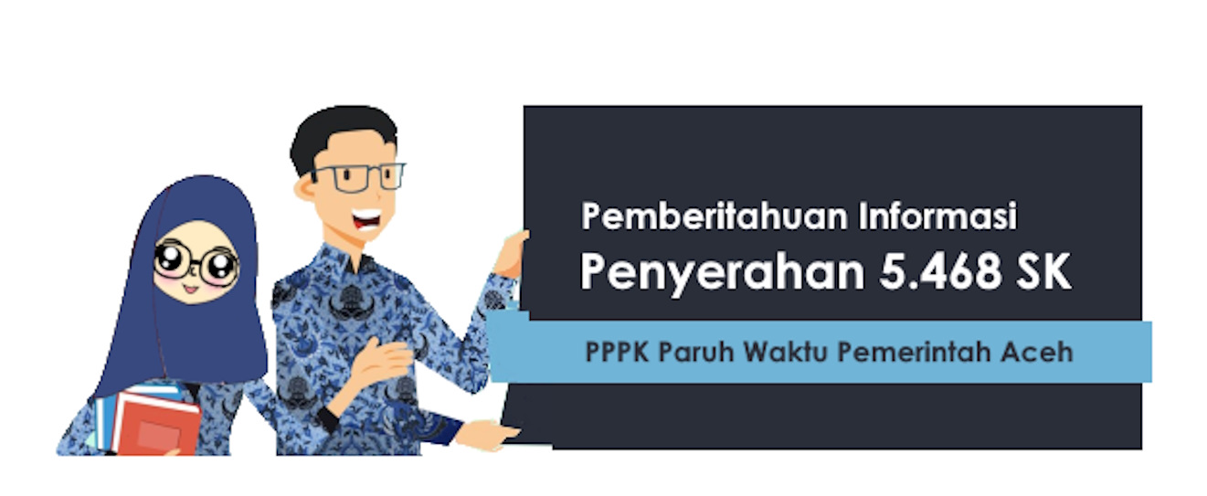 Badan Kepegawaian Aceh menginformasikan bahwa Penyerahan SK PPPK Paruh Waktu Pemerintah Aceh akan dilaksanakan pada: