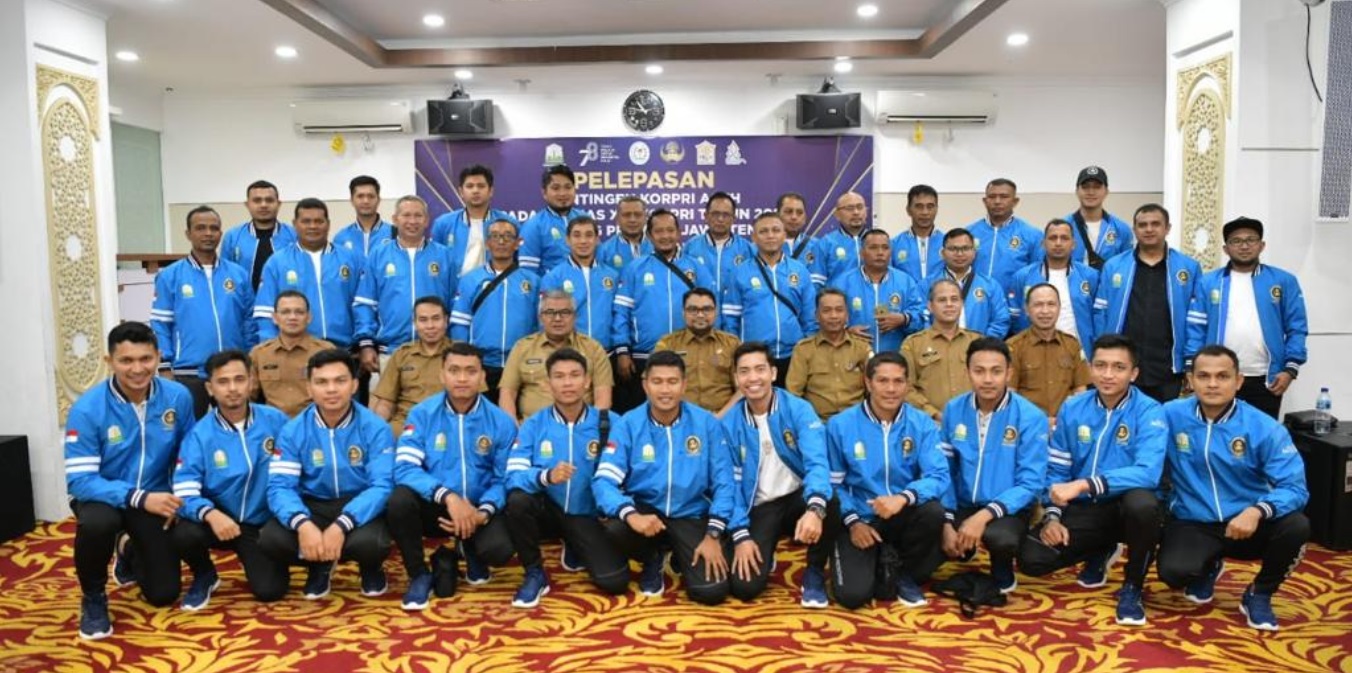 BKA : SEKDA ACEH LEPAS KONTINGEN ATLET KORPRI ACEH YANG AKAN BERTANDING PADA AJANG PORNAS XVI KORPRI TAHUN 2023 DI SEMARANG