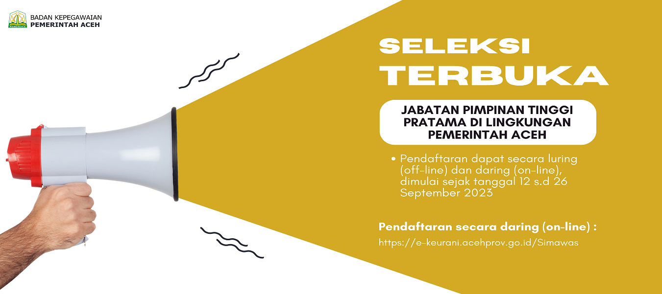 Perpanjangan Seleksi Terbuka Jabatan Pimpinan Tinggi (JPT) Pratama Pada Pemerintah Aceh