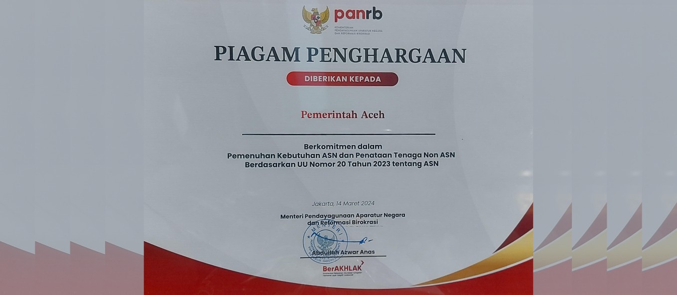 BKA : Pemerintah Aceh Terima Penghargaan atas Komitmen dalam Pemenuhan Kebutuhan ASN dan Penataan Tenaga Non ASN dari Kementerian PANRB Tahun 2024