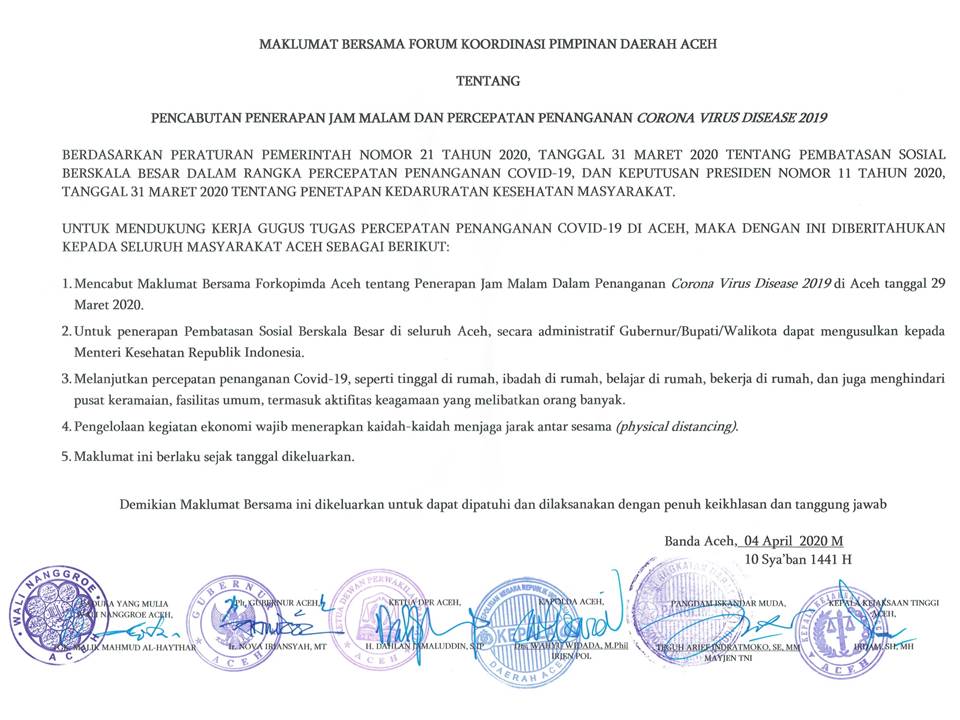 Penyesuaian Aktivitas ASN untuk kesiagaan dan pencegahan COVID-19 di Pemerintah Aceh